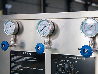 FJZ-4A型飛機(jī)加油接頭綜合試驗(yàn)臺(tái)是為滿足偏遠(yuǎn)地區(qū)或者不便于提供電源的現(xiàn)場(chǎng)測(cè)試各型飛機(jī)壓力加油接頭性能及飛機(jī)加油膠管耐壓試驗(yàn)要求而專門進(jìn)行設(shè)計(jì)的一款試驗(yàn)設(shè)備。它能準(zhǔn)確輸出和檢測(cè)試驗(yàn)過程中的各種壓力,測(cè)試精度滿足技術(shù)要求。該設(shè)備具有性能可靠,操作簡(jiǎn)便,移動(dòng)性強(qiáng),不帶電提供壓力,可擴(kuò)展測(cè)試其它管路及閥門等特點(diǎn)。試驗(yàn)臺(tái)整體采用不銹鋼材質(zhì),試驗(yàn)臺(tái)管路均為不銹鋼管路,滿足各種惡劣環(huán)境下的工作要求,是一臺(tái)具有一定通用性的航煤綜合測(cè)試設(shè)備。