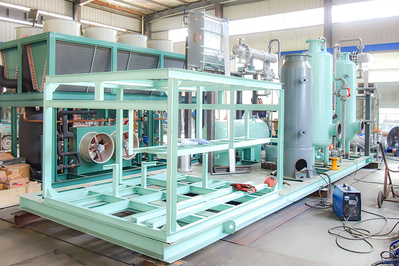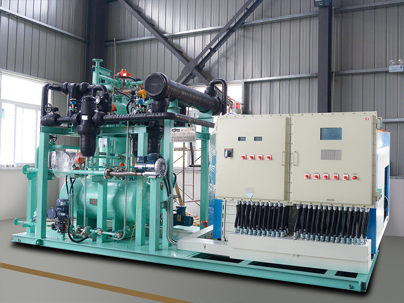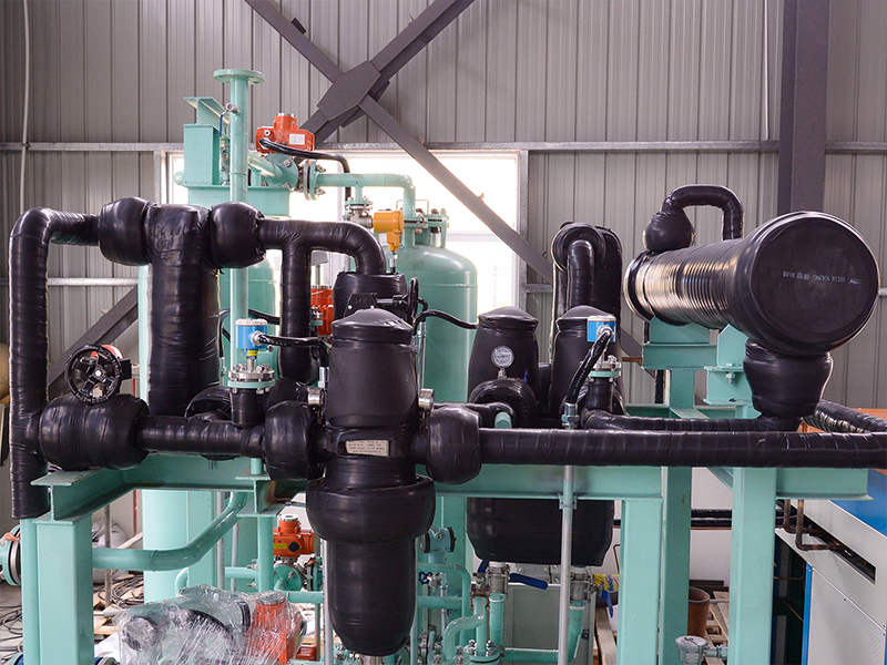 儲油罐回收裝置的冷凝法,是利用烴類物質(zhì)在不同溫度下的蒸汽壓差異,通過適宜溫度范圍逐步降溫的形式,使釋放的大部分油氣蒸汽壓達到過飽和狀態(tài),從而使過飽和油氣冷凝析出形成液態(tài)汽油的回收油氣方法。缺點是冷卻溫度越低,汽油蒸發(fā)的回收率越高,但在冷卻工藝中要消耗很大的能源。